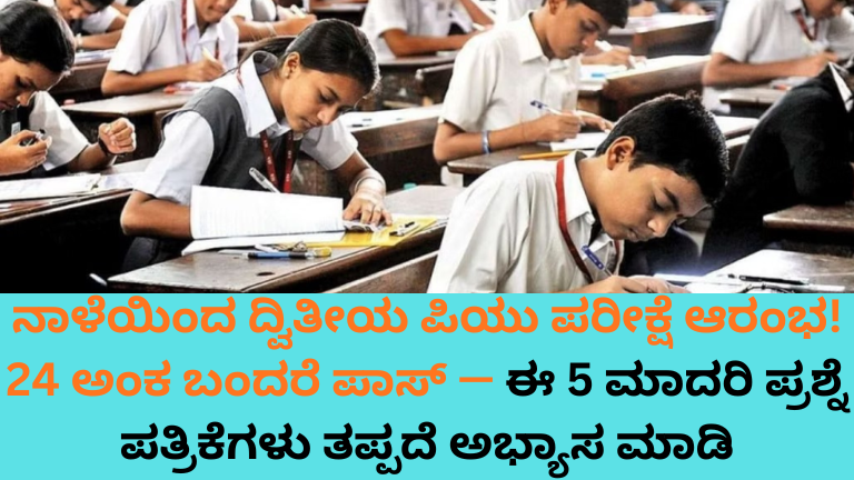 ನಾಳೆಯಿಂದ ದ್ವಿತೀಯ ಪಿಯು ಪರೀಕ್ಷೆ ಆರಂಭ! 24 ಅಂಕ ಬಂದರೆ ಪಾಸ್ — ಈ 5 ಮಾದರಿ ಪ್ರಶ್ನೆ ಪತ್ರಿಕೆಗಳು ತಪ್ಪದೆ ಅಭ್ಯಾಸ ಮಾಡಿ