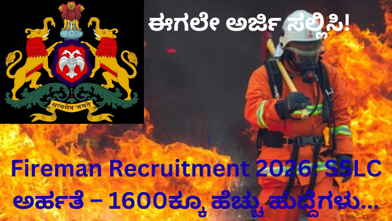 🔥 Fireman Recruitment 2026: SSLC ಪಾಸ್ ಅಭ್ಯರ್ಥಿಗಳಿಗೆ 1600ಕ್ಕೂ ಹೆಚ್ಚು ಹುದ್ದೆಗಳ ಸುವರ್ಣಾವಕಾಶ! ಸರ್ಕಾರಿ ಉದ್ಯೋಗದ ಕನಸು ಕಾಣುತ್ತಿರುವ ಯುವಕರಿಗೆ 2026ರಲ್ಲಿ ದೊಡ್ಡ ಅವಕಾಶ ಸಿಗುವ …