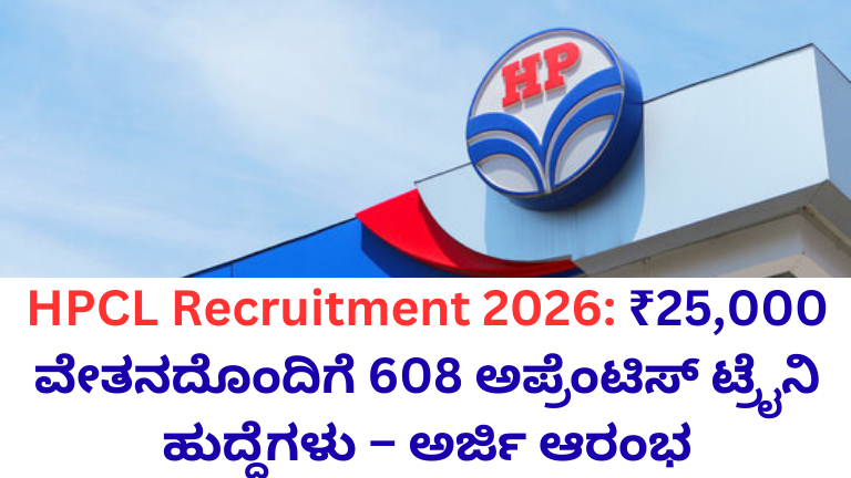 HPCL Recruitment 2026: ₹25,000 ವೇತನದೊಂದಿಗೆ 608 ಅಪ್ರೆಂಟಿಸ್ ಟ್ರೈನಿ ಹುದ್ದೆಗಳು – ಅರ್ಜಿ ಆರಂಭ