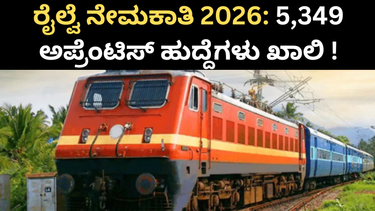 ರೈಲ್ವೆ ನೇಮಕಾತಿ 2026: 5,349 ಅಪ್ರೆಂಟಿಸ್ ಹುದ್ದೆಗಳು ಖಾಲಿ – 10ನೇ ತರಗತಿ + ITI ಇದ್ದವರಿಗೆ ಸುವರ್ಣಾವಕಾಶ, ಪರೀಕ್ಷೆಯೇ ಇಲ್ಲ!